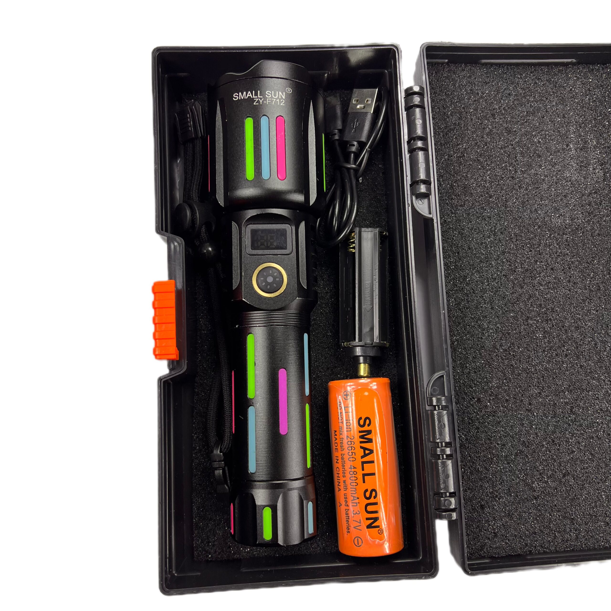 چراغ قوه اسمال سان مدل ZY-F712 یکی از قدرتمندترین و کاربردی‌ترین چراغ‌قوه‌های شارژی این برند است که با طراحی حرفه‌ای، شدت نور 4000 لومن بسیار بالا و امکانات متنوع، به گزینه‌ای ایده‌آل برای کمپینگ، کوهنوردی، نگهبانی، سفر، تعمیرات و استفاده روزمره تبدیل شده است.